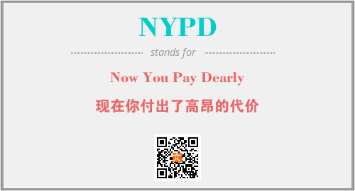 上述内容是“Now You Pay Dearly”作为“NYPD”的缩写,解释为“现在你付出了高昂的代价”时的信息,以及英文缩略词NYPD所代表的英文单词,其对应的中文拼音、详细解释以及在英文中的流行度和相关分类、应用领域及应用示例等。