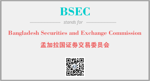 上述内容是“Bangladesh Securities and Exchange Commission”作为“BSEC”的缩写,解释为“孟加拉国证券交易委员会”时的信息,以及英文缩略词BSEC所代表的英文单词,其对应的中文拼音、详细解释以及在英文中的流行度和相关分类、应用领域及应用示例等。