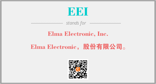 上述内容是“Elma Electronic, Inc.”作为“EEI”的缩写,解释为“Elma Electronic,股份有限公司。”时的信息,以及英文缩略词EEI所代表的英文单词,其对应的中文拼音、详细解释以及在英文中的流行度和相关分类、应用领域及应用示例等。