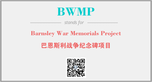 上述内容是“Barnsley War Memorials Project”作为“BWMP”的缩写,解释为“巴恩斯利战争纪念碑项目”时的信息,以及英文缩略词BWMP所代表的英文单词,其对应的中文拼音、详细解释以及在英文中的流行度和相关分类、应用领域及应用示例等。
