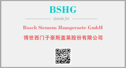 以上为Bosch Siemens Hausgeraete GmbH英文缩略词BSHG的中文解释,以及该英文缩写在英语的流行度、分类和应用领域方面的信息。