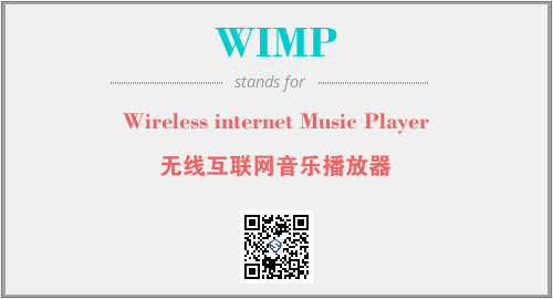 上述内容是“Wireless internet Music Player”作为“WIMP”的缩写,解释为“无线互联网音乐播放器”时的信息,以及英文缩略词WIMP所代表的英文单词,其对应的中文拼音、详细解释以及在英文中的流行度和相关分类、应用领域及应用示例等。