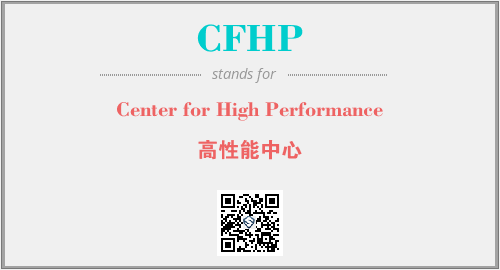 英文缩略词“CFHP”经常作为“Center for High Performance”的英文缩写来使用,中文表示:“高性能中心”。本文将详细介绍英文缩写词CFHP所代表英文单词,其对应的中文拼音、详细解释以及在英语中的流行度。此外,还有关于缩略词CFHP的分类、应用领域及相关应用示例等。