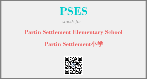 上述内容是“Partin Settlement Elementary School”作为“PSES”的缩写,解释为“Partin Settlement小学”时的信息,以及英文缩略词PSES所代表的英文单词,其对应的中文拼音、详细解释以及在英文中的流行度和相关分类、应用领域及应用示例等。