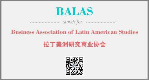 英文缩略词“BALAS”经常作为“Business Association of Latin American Studies”的英文缩写来使用,中文表示:“拉丁美洲研究商业协会”。本文将详细介绍英文缩写词BALAS所代表英文单词,其对应的中文拼音、详细解释以及在英语中的流行度。此外,还有关于缩略词BALAS的分类、应用领域及相关应用示例等。