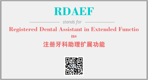 以上为Registered Dental Assistant in Extended Functions英文缩略词RDAEF的中文解释,以及该英文缩写在英语的流行度、分类和应用领域方面的信息。