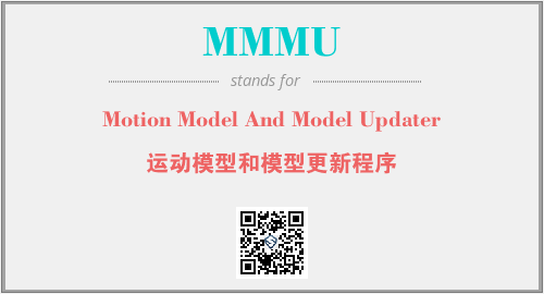 上述内容是“Motion Model And Model Updater”作为“MMMU”的缩写,解释为“运动模型和模型更新程序”时的信息,以及英文缩略词MMMU所代表的英文单词,其对应的中文拼音、详细解释以及在英文中的流行度和相关分类、应用领域及应用示例等。