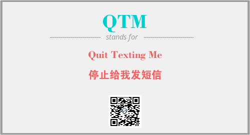 以上为Quit Texting Me英文缩略词QTM的中文解释,以及该英文缩写在英语的流行度、分类和应用领域方面的信息。