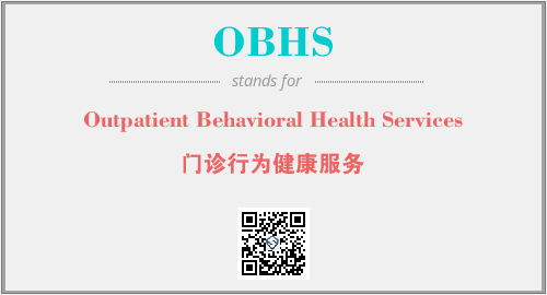 英文缩略词“OBHS”经常作为“Outpatient Behavioral Health Services”的英文缩写来使用,中文表示:“门诊行为健康服务”。本文将详细介绍英文缩写词OBHS所代表英文单词,其对应的中文拼音、详细解释以及在英语中的流行度。此外,还有关于缩略词OBHS的分类、应用领域及相关应用示例等。
