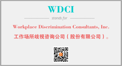 上述内容是“Workplace Discrimination Consultants, Inc.”作为“WDCI”的缩写,解释为“工作场所歧视咨询公司(股份有限公司)。”时的信息,以及英文缩略词WDCI所代表的英文单词,其对应的中文拼音、详细解释以及在英文中的流行度和相关分类、应用领域及应用示例等。