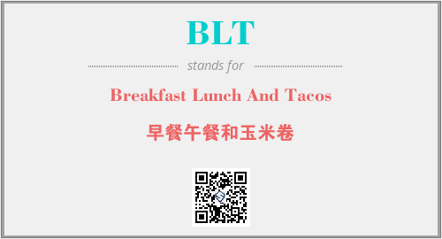 英文缩略词“BLT”经常作为“Breakfast Lunch And Tacos”的英文缩写来使用,中文表示:“早餐午餐和玉米卷”。本文将详细介绍英文缩写词BLT所代表英文单词,其对应的中文拼音、详细解释以及在英语中的流行度。此外,还有关于缩略词BLT的分类、应用领域及相关应用示例等。
