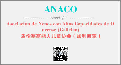 以上为Asociación de Nenos con Altas Capacidades de Ourense (Galician)英文缩略词ANACO的中文解释,以及该英文缩写在英语的流行度、分类和应用领域方面的信息。