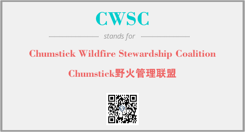 上述内容是“Chumstick Wildfire Stewardship Coalition”作为“CWSC”的缩写,解释为“Chumstick野火管理联盟”时的信息,以及英文缩略词CWSC所代表的英文单词,其对应的中文拼音、详细解释以及在英文中的流行度和相关分类、应用领域及应用示例等。
