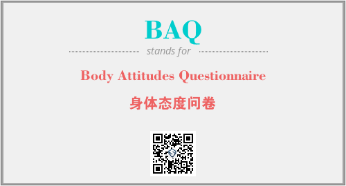 上述内容是“Body Attitudes Questionnaire”作为“BAQ”的缩写,解释为“身体态度问卷”时的信息,以及英文缩略词BAQ所代表的英文单词,其对应的中文拼音、详细解释以及在英文中的流行度和相关分类、应用领域及应用示例等。