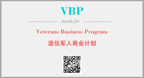 英文缩略词“VBP”经常作为“Veterans Business Program”的英文缩写来使用,中文表示:“退伍军人商业计划”。本文将详细介绍英文缩写词VBP所代表英文单词,其对应的中文拼音、详细解释以及在英语中的流行度。此外,还有关于缩略词VBP的分类、应用领域及相关应用示例等。