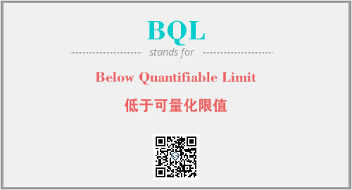 上述内容是“Below Quantifiable Limit”作为“BQL”的缩写,解释为“低于可量化限值”时的信息,以及英文缩略词BQL所代表的英文单词,其对应的中文拼音、详细解释以及在英文中的流行度和相关分类、应用领域及应用示例等。