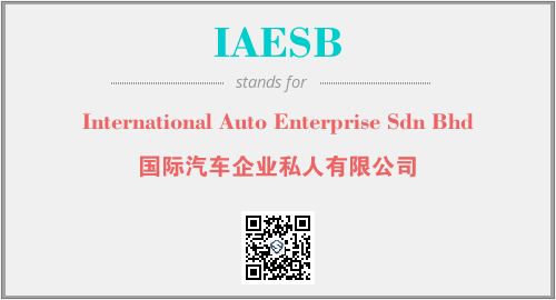 上述内容是“International Auto Enterprise Sdn Bhd”作为“IAESB”的缩写,解释为“国际汽车企业私人有限公司”时的信息,以及英文缩略词IAESB所代表的英文单词,其对应的中文拼音、详细解释以及在英文中的流行度和相关分类、应用领域及应用示例等。