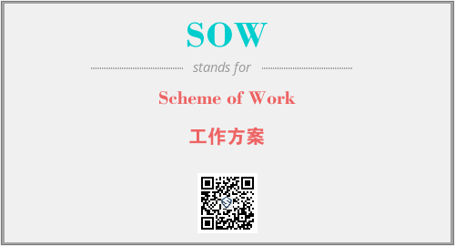 英文缩略词“SOW”经常作为“Scheme of Work”的英文缩写来使用,中文表示:“工作方案”。本文将详细介绍英文缩写词SOW所代表英文单词,其对应的中文拼音、详细解释以及在英语中的流行度。此外,还有关于缩略词SOW的分类、应用领域及相关应用示例等。
