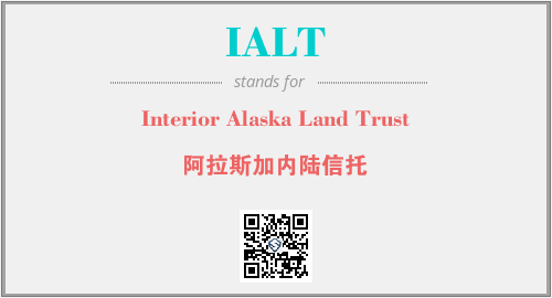 英文缩略词“IALT”经常作为“Interior Alaska Land Trust”的英文缩写来使用,中文表示:“阿拉斯加内陆信托”。本文将详细介绍英文缩写词IALT所代表英文单词,其对应的中文拼音、详细解释以及在英语中的流行度。此外,还有关于缩略词IALT的分类、应用领域及相关应用示例等。