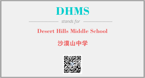 上述内容是“Desert Hills Middle School”作为“DHMS”的缩写,解释为“沙漠山中学”时的信息,以及英文缩略词DHMS所代表的英文单词,其对应的中文拼音、详细解释以及在英文中的流行度和相关分类、应用领域及应用示例等。
