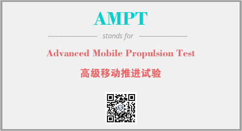 以上为Advanced Mobile Propulsion Test英文缩略词AMPT的中文解释,以及该英文缩写在英语的流行度、分类和应用领域方面的信息。