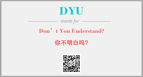 英文缩略词“DYU”经常作为“Don’t You Understand?”的英文缩写来使用,中文表示:“你不明白吗?”。本文将详细介绍英文缩写词DYU所代表英文单词,其对应的中文拼音、详细解释以及在英语中的流行度。此外,还有关于缩略词DYU的分类、应用领域及相关应用示例等。