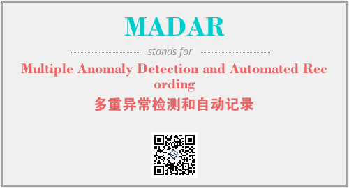 上述内容是“Multiple Anomaly Detection and Automated Recording”作为“MADAR”的缩写,解释为“多重异常检测和自动记录”时的信息,以及英文缩略词MADAR所代表的英文单词,其对应的中文拼音、详细解释以及在英文中的流行度和相关分类、应用领域及应用示例等。