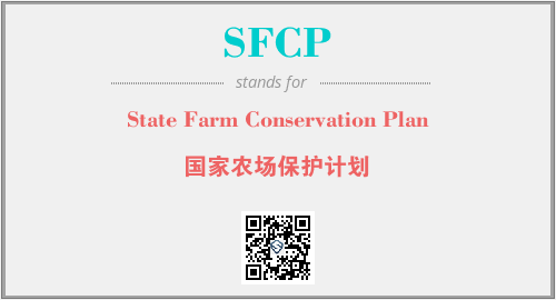 上述内容是“State Farm Conservation Plan”作为“SFCP”的缩写,解释为“国家农场保护计划”时的信息,以及英文缩略词SFCP所代表的英文单词,其对应的中文拼音、详细解释以及在英文中的流行度和相关分类、应用领域及应用示例等。