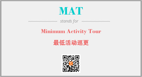 英文缩略词“MAT”经常作为“Minimum Activity Tour”的英文缩写来使用,中文表示:“最低活动巡更”。本文将详细介绍英文缩写词MAT所代表英文单词,其对应的中文拼音、详细解释以及在英语中的流行度。此外,还有关于缩略词MAT的分类、应用领域及相关应用示例等。