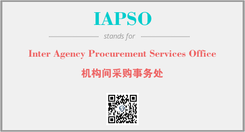 上述内容是“Inter Agency Procurement Services Office”作为“IAPSO”的缩写,解释为“机构间采购事务处”时的信息,以及英文缩略词IAPSO所代表的英文单词,其对应的中文拼音、详细解释以及在英文中的流行度和相关分类、应用领域及应用示例等。