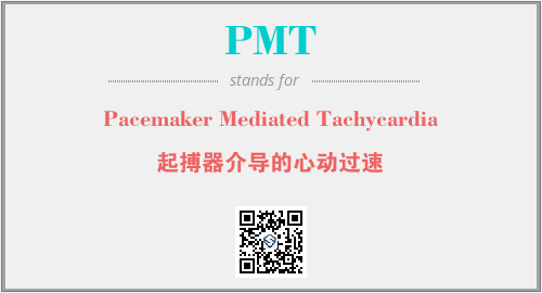 英文缩略词“PMT”经常作为“Pacemaker Mediated Tachycardia”的英文缩写来使用,中文表示:“起搏器介导的心动过速”。本文将详细介绍英文缩写词PMT所代表英文单词,其对应的中文拼音、详细解释以及在英语中的流行度。此外,还有关于缩略词PMT的分类、应用领域及相关应用示例等。