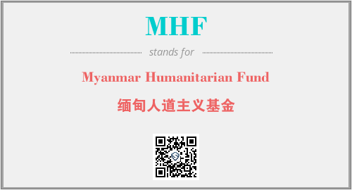 上述内容是“Myanmar Humanitarian Fund”作为“MHF”的缩写,解释为“缅甸人道主义基金”时的信息,以及英文缩略词MHF所代表的英文单词,其对应的中文拼音、详细解释以及在英文中的流行度和相关分类、应用领域及应用示例等。
