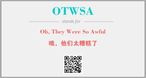 以上为Oh, They Were So Awful英文缩略词OTWSA的中文解释,以及该英文缩写在英语的流行度、分类和应用领域方面的信息。