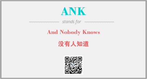 上述内容是“And Nobody Knows”作为“ANK”的缩写,解释为“没有人知道”时的信息,以及英文缩略词ANK所代表的英文单词,其对应的中文拼音、详细解释以及在英文中的流行度和相关分类、应用领域及应用示例等。