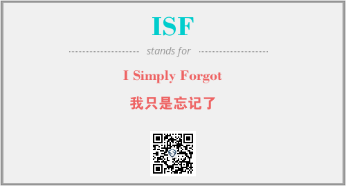 英文缩略词“ISF”经常作为“I Simply Forgot”的英文缩写来使用,中文表示:“我只是忘记了”。本文将详细介绍英文缩写词ISF所代表英文单词,其对应的中文拼音、详细解释以及在英语中的流行度。此外,还有关于缩略词ISF的分类、应用领域及相关应用示例等。