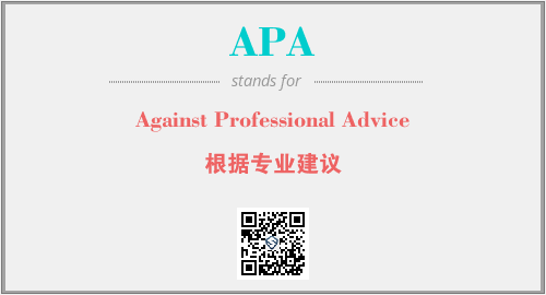 以上为Against Professional Advice英文缩略词APA的中文解释,以及该英文缩写在英语的流行度、分类和应用领域方面的信息。