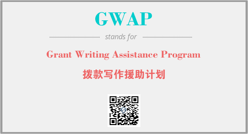 以上为Grant Writing Assistance Program英文缩略词GWAP的中文解释,以及该英文缩写在英语的流行度、分类和应用领域方面的信息。