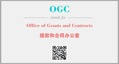 上述内容是“Office of Grants and Contracts”作为“OGC”的缩写,解释为“拨款和合同办公室”时的信息,以及英文缩略词OGC所代表的英文单词,其对应的中文拼音、详细解释以及在英文中的流行度和相关分类、应用领域及应用示例等。