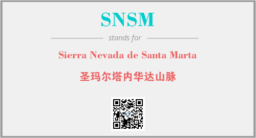英文缩略词“SNSM”经常作为“Sierra Nevada de Santa Marta”的英文缩写来使用,中文表示:“圣玛尔塔内华达山脉”。本文将详细介绍英文缩写词SNSM所代表英文单词,其对应的中文拼音、详细解释以及在英语中的流行度。此外,还有关于缩略词SNSM的分类、应用领域及相关应用示例等。