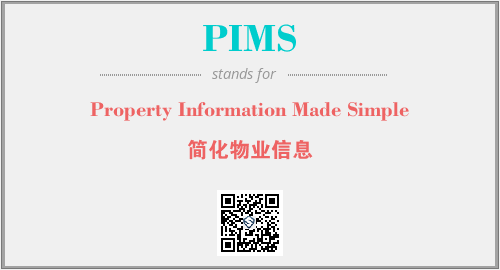英文缩略词“PIMS”经常作为“Property Information Made Simple”的英文缩写来使用,中文表示:“简化物业信息”。本文将详细介绍英文缩写词PIMS所代表英文单词,其对应的中文拼音、详细解释以及在英语中的流行度。此外,还有关于缩略词PIMS的分类、应用领域及相关应用示例等。