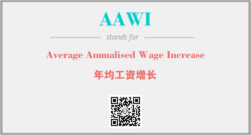上述内容是“Average Annualised Wage Increase”作为“AAWI”的缩写,解释为“年均工资增长”时的信息,以及英文缩略词AAWI所代表的英文单词,其对应的中文拼音、详细解释以及在英文中的流行度和相关分类、应用领域及应用示例等。
