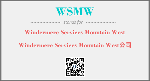 上述内容是“Windermere Services Mountain West”作为“WSMW”的缩写,解释为“Windermere Services Mountain West公司”时的信息,以及英文缩略词WSMW所代表的英文单词,其对应的中文拼音、详细解释以及在英文中的流行度和相关分类、应用领域及应用示例等。