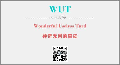 英文缩略词“WUT”经常作为“Wonderful Useless Turd”的英文缩写来使用,中文表示:“神奇无用的草皮”。本文将详细介绍英文缩写词WUT所代表英文单词,其对应的中文拼音、详细解释以及在英语中的流行度。此外,还有关于缩略词WUT的分类、应用领域及相关应用示例等。