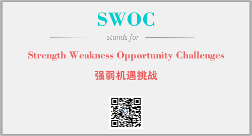 以上为Strength Weakness Opportunity Challenges英文缩略词SWOC的中文解释,以及该英文缩写在英语的流行度、分类和应用领域方面的信息。