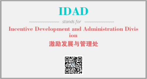 上述内容是“Incentive Development and Administration Division”作为“IDAD”的缩写,解释为“激励发展与管理处”时的信息,以及英文缩略词IDAD所代表的英文单词,其对应的中文拼音、详细解释以及在英文中的流行度和相关分类、应用领域及应用示例等。