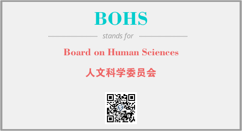 上述内容是“Board on Human Sciences”作为“BOHS”的缩写,解释为“人文科学委员会”时的信息,以及英文缩略词BOHS所代表的英文单词,其对应的中文拼音、详细解释以及在英文中的流行度和相关分类、应用领域及应用示例等。