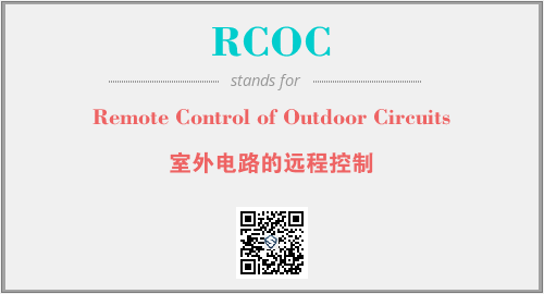上述内容是“Remote Control of Outdoor Circuits”作为“RCOC”的缩写,解释为“室外电路的远程控制”时的信息,以及英文缩略词RCOC所代表的英文单词,其对应的中文拼音、详细解释以及在英文中的流行度和相关分类、应用领域及应用示例等。