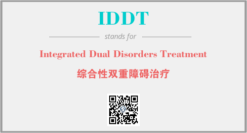 英文缩略词“IDDT”经常作为“Integrated Dual Disorders Treatment”的英文缩写来使用,中文表示:“综合性双重障碍治疗”。本文将详细介绍英文缩写词IDDT所代表英文单词,其对应的中文拼音、详细解释以及在英语中的流行度。此外,还有关于缩略词IDDT的分类、应用领域及相关应用示例等。