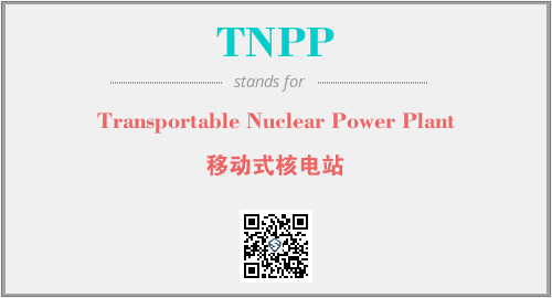英文缩略词“TNPP”经常作为“Transportable Nuclear Power Plant”的英文缩写来使用,中文表示:“移动式核电站”。本文将详细介绍英文缩写词TNPP所代表英文单词,其对应的中文拼音、详细解释以及在英语中的流行度。此外,还有关于缩略词TNPP的分类、应用领域及相关应用示例等。