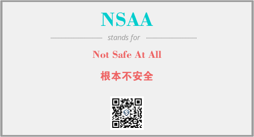 上述内容是“Not Safe At All”作为“NSAA”的缩写,解释为“根本不安全”时的信息,以及英文缩略词NSAA所代表的英文单词,其对应的中文拼音、详细解释以及在英文中的流行度和相关分类、应用领域及应用示例等。
